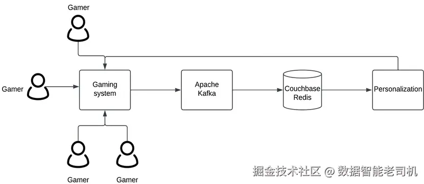 - 个性化体验 :许多游戏会依据玩家的水平、偏好、行为与购买记录进行个性化定制。要在实时 中完成个性化,系统需实时采集并分析玩家偏好与行为。常见做法是使用 Apache Flink 与 Kafka 进行实时数据流处理,并采用 Redis、Couchbase 等数据库作为存储与服务层。