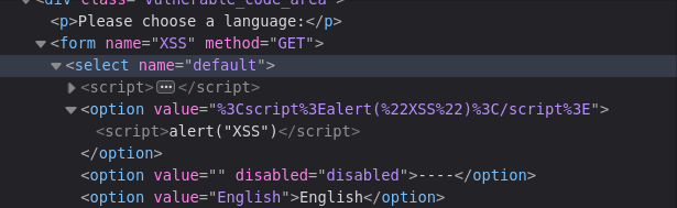 输入网址http://127.0.0.1/vulnerabilities/xss_d/?default=<script>alert("XSS")</script>