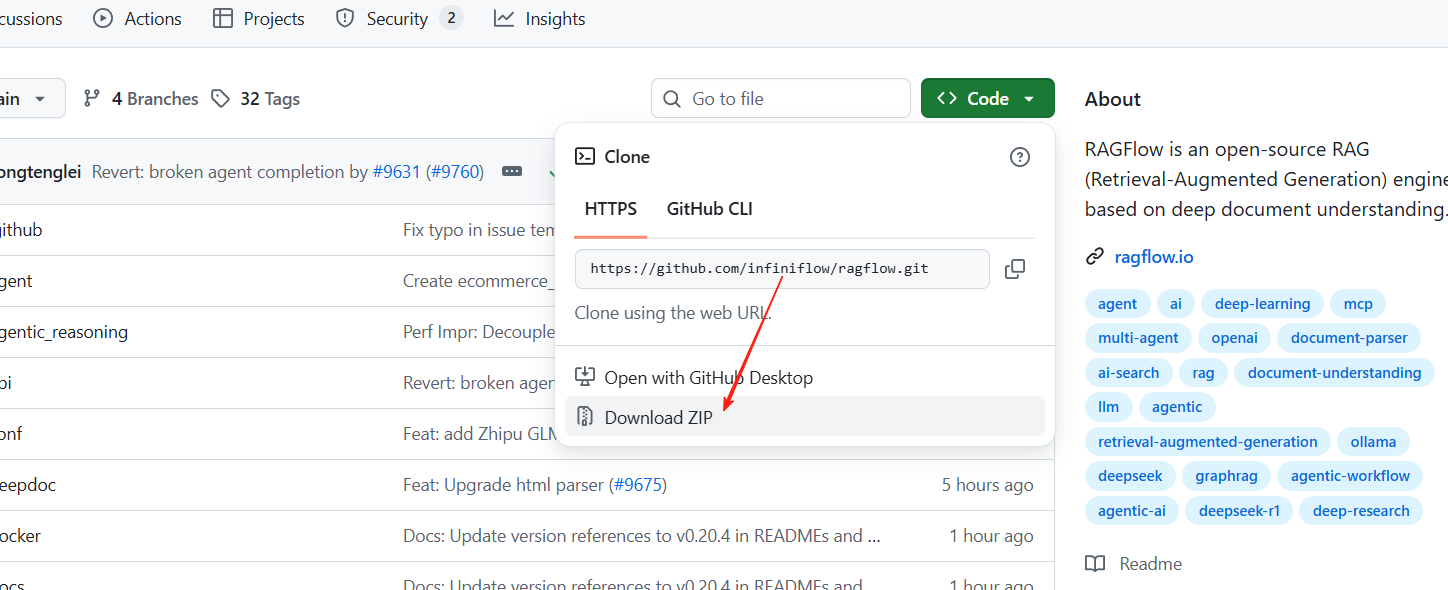 - 现在RAGFlow压缩包:https://github.com/infiniflow/ragflow