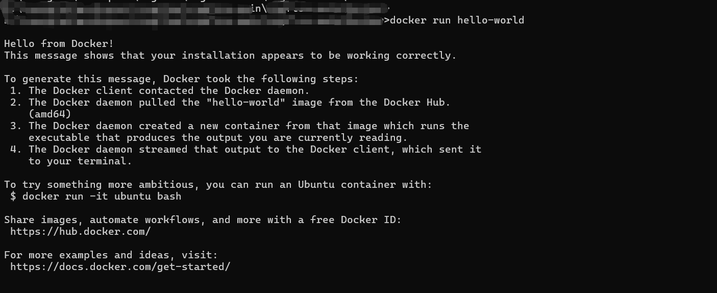 双击Docker Desktop Installer.exe安装docker,出现如下页面标识安装成功: