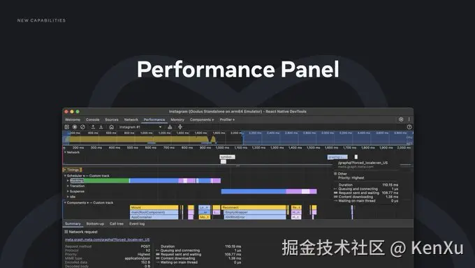 - 应用场景:大型列表渲染(如 Legend List)、监控生产 App。Callstack 的 Rozenite 扩展了此面板,用于自定义指标。