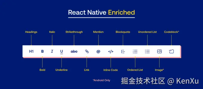 react-native-enriched 是新库,增强 Rich Text Input,支持复杂编辑。解决 Native 文本组件的局限性,提供更丰富的交互。