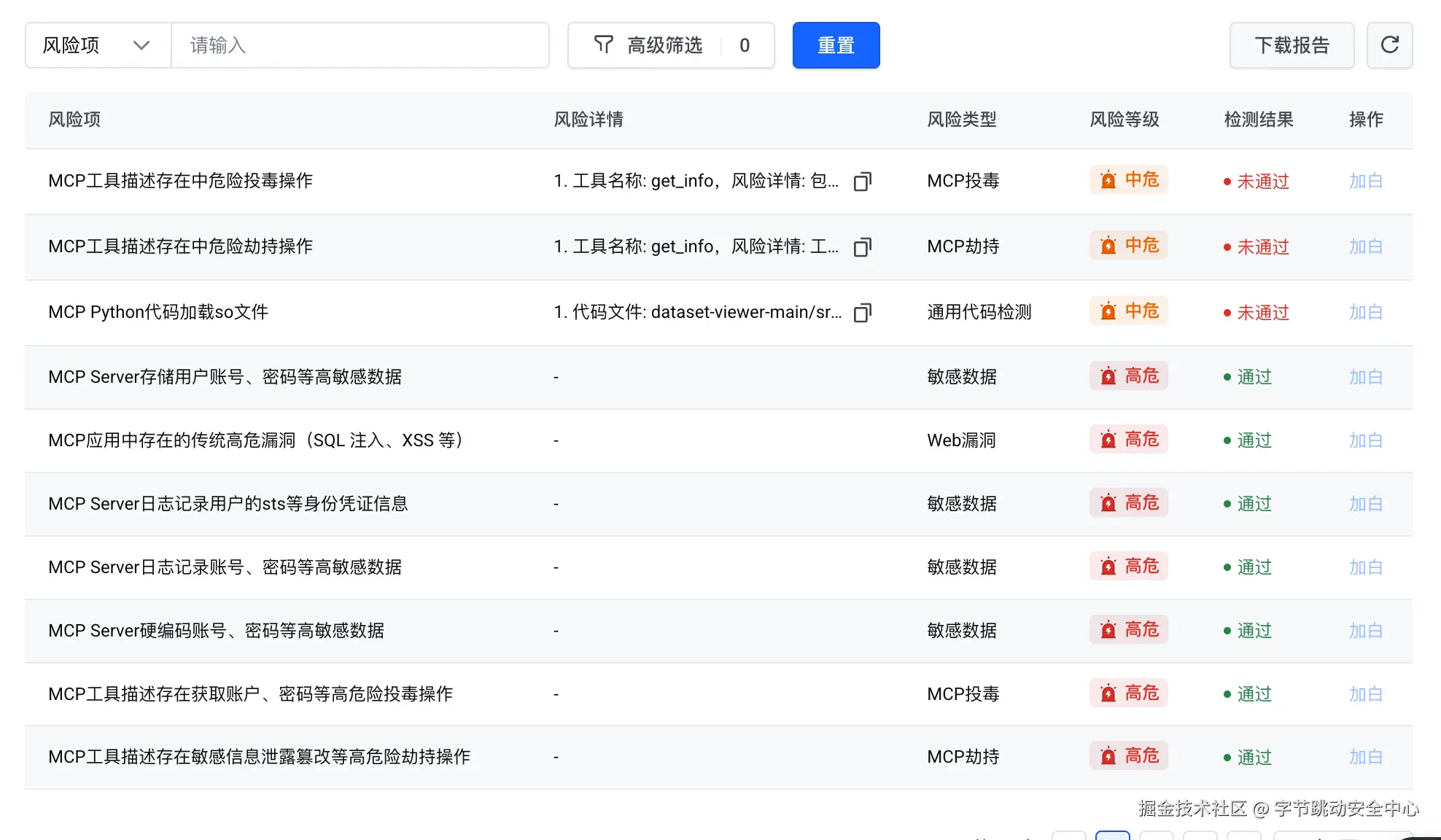 Model Context Protocol(MCP)作为 AI 应用生态系统中的关键协议,为大语言模型与外部工具、数据源的集成提供了标准化接口。随着 MCP 在企业级应用中的快速普及,其安全风险也日益凸显。构建一套智能化的 MCP 安全扫描系统,不仅是技术发展的必然需求,更是保障 AI 生态安全的重要基础设施。