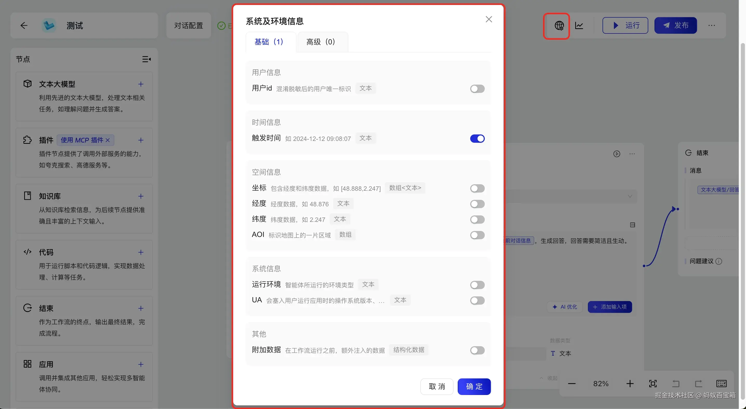 工具调用所需参数,由查询官方插件列表接口获取。 |