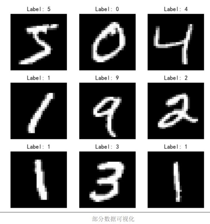 MNIST数据集包含70,000张28x28像素的手写数字灰度图像,分为训练集和测试集两部分: