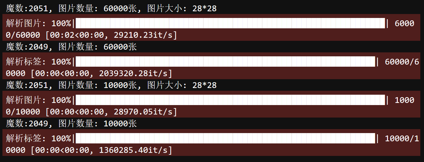 print(f'魔数: {magic_number}, 图片数量: {num_images}张, 图片大小: {num_rows}*{num_cols}')