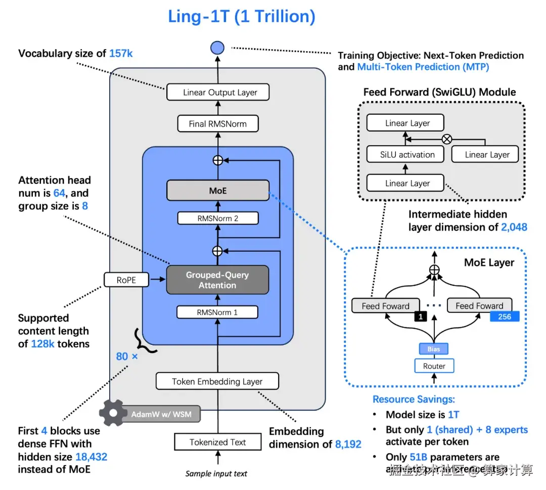从技术架构来看,Ling-1T延续了Ling 2.0的架构设计,总参数量达到1T规模,采用混合专家模型架构,每个token激活其中约50B参数。这种设计使得模型在保持强大能力的同时,实现了更高的计算效率。