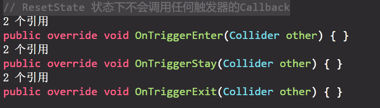 /// 当碰撞体持续处于触发器中时调用的方法,转发给当前状态处理