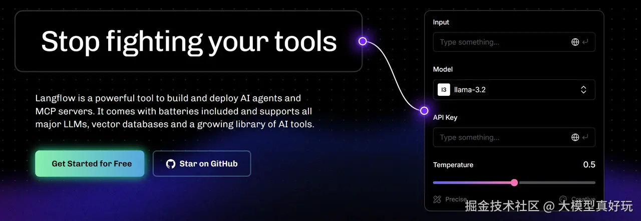 - LangFlow:在 LangChain 生态基础上提供可视化界面,使复杂的链式调用更直观易用。
