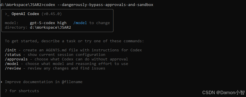安装完成后,您可以在任何项目目录中开始使用 Codex: