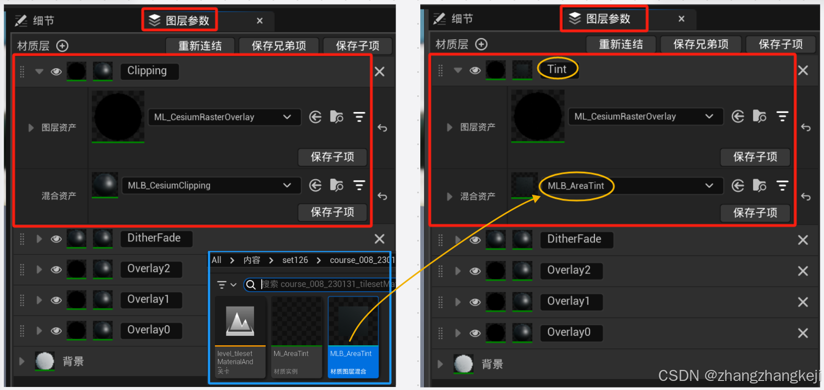 (61) 关闭上面的材质图层混合,开始修改那个材质实例 :