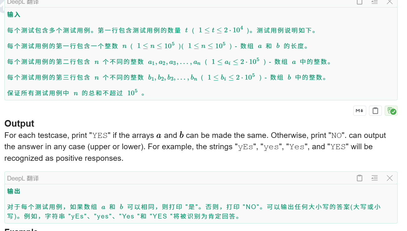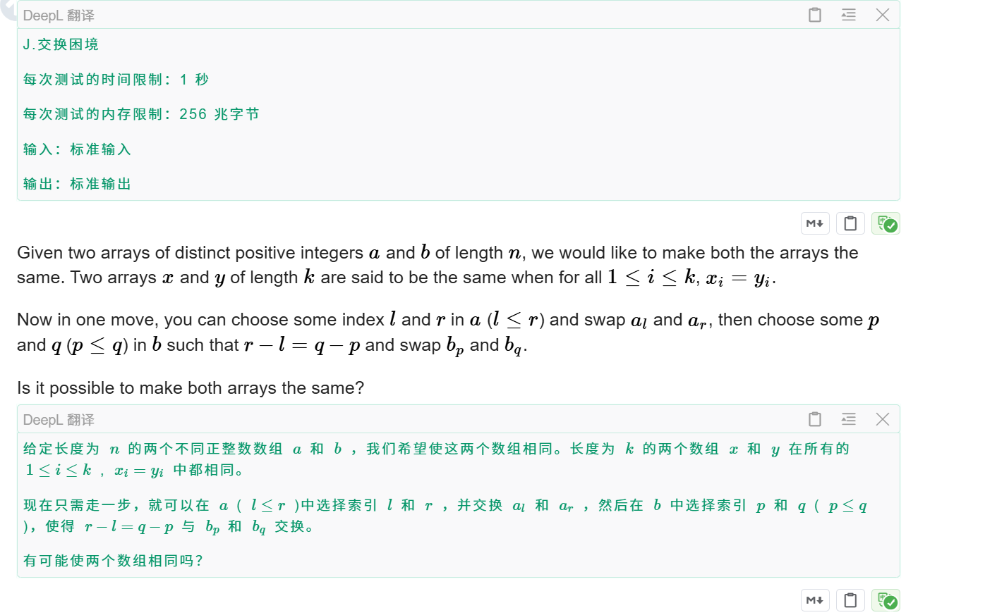 一步距离无论是多少的交换,都等同于奇数 次距离为2交换,这时假设a的数组不变,所以可以直接找把b数组交换为a数组时,一共需要多少步,不管这一步的距离是多少都是奇数次距离为2的交换,如果是偶数,则可以实现
