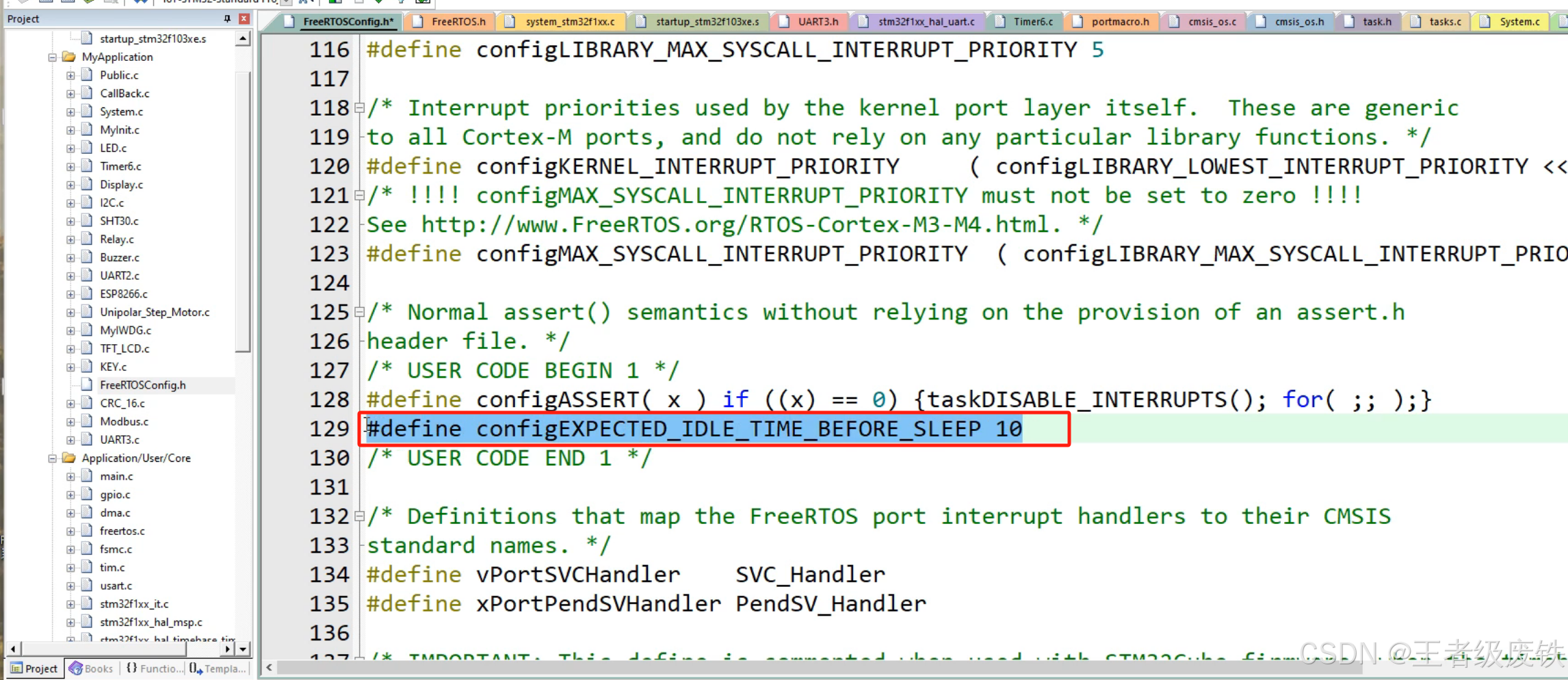 此参数已在 FreeRTOS.h文件中定义了,默认为2,用户可以自定义时,不能小于2