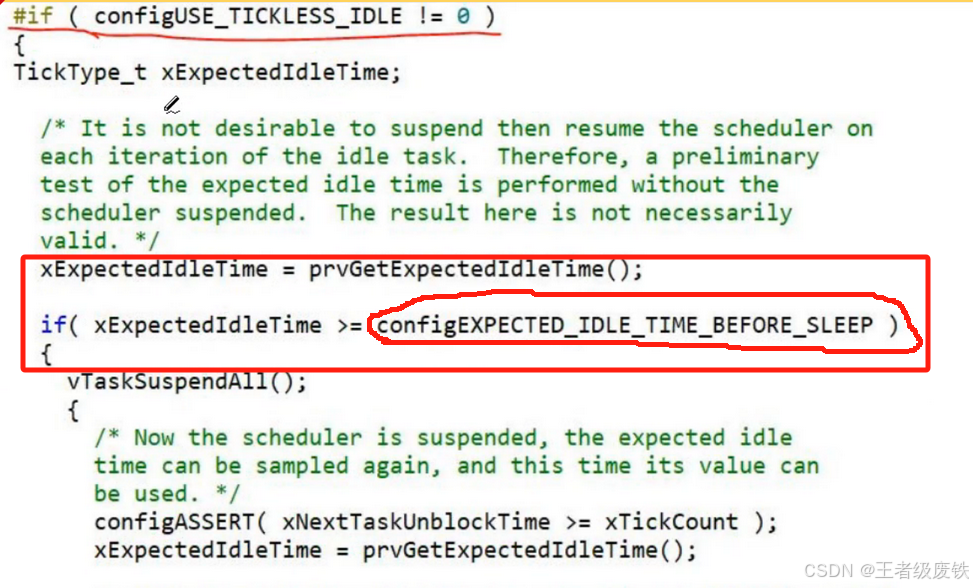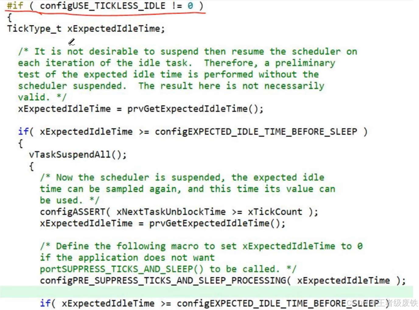 先计算出来低功耗的时间:xExpectedIdleTime = prvGetExpectedIdleTime();