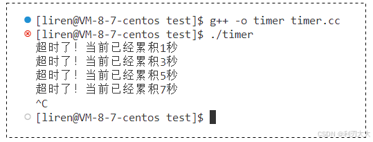 cout << "超时了!当前已经累积" << time(nullptr) - presec << "秒" << endl;