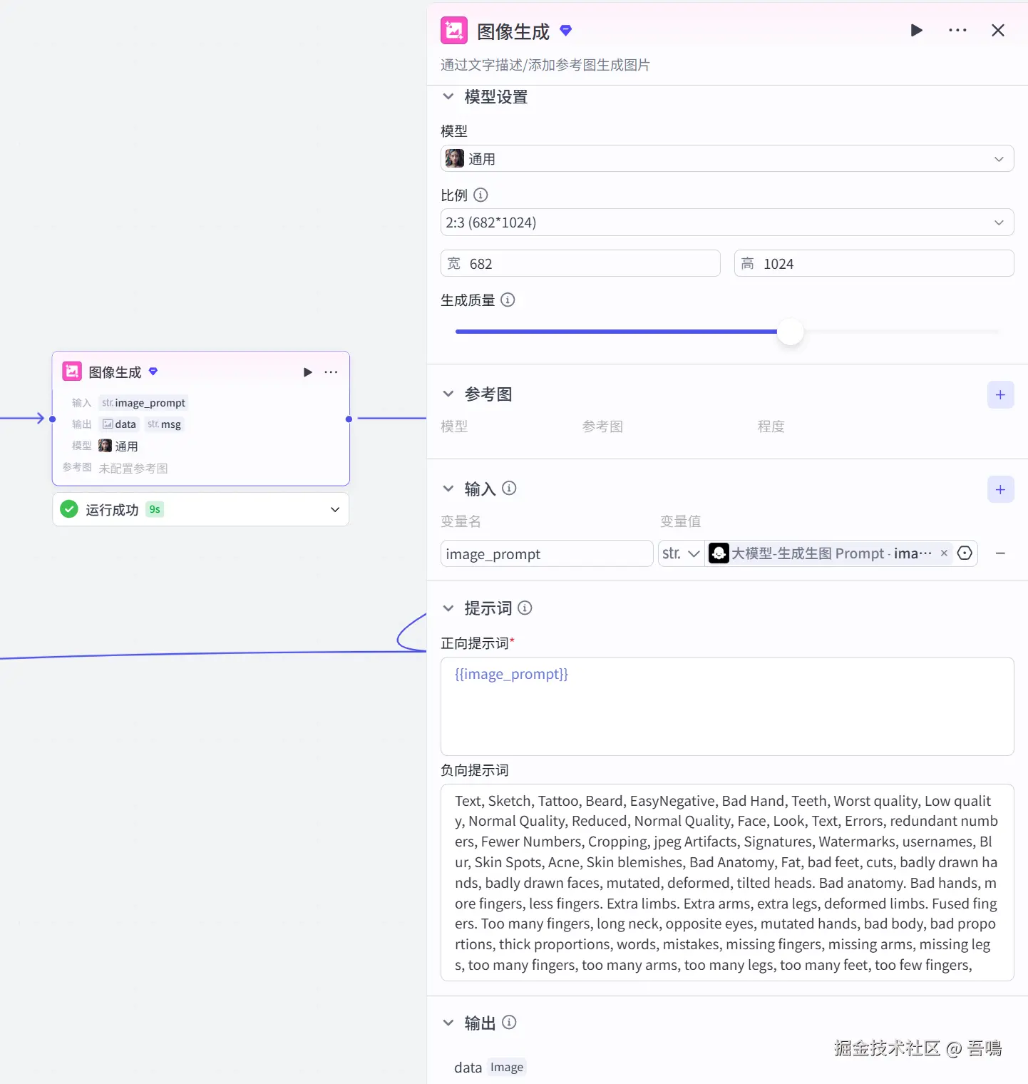 5、封面图生成:通过使用图像生成节点,根据大模型生成的提示词和关键文案信息生成笔记封面图。