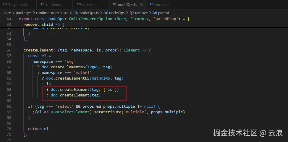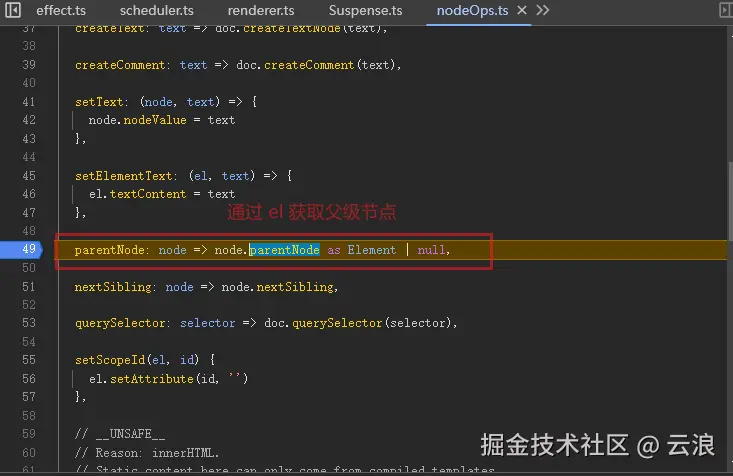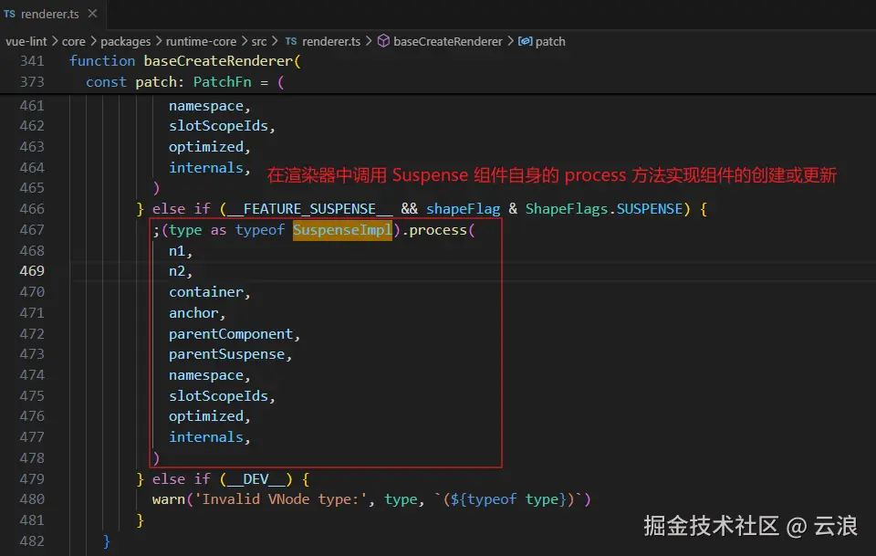 在创建 Suspense 节点时,依赖了一些渲染器的方法