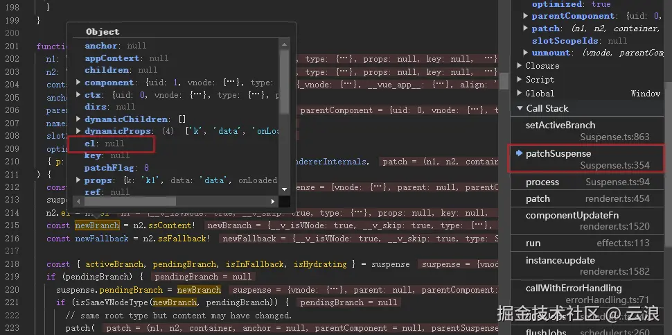 方法对 Suspense 默认插槽,即内容分支(vnode.ssContent!
