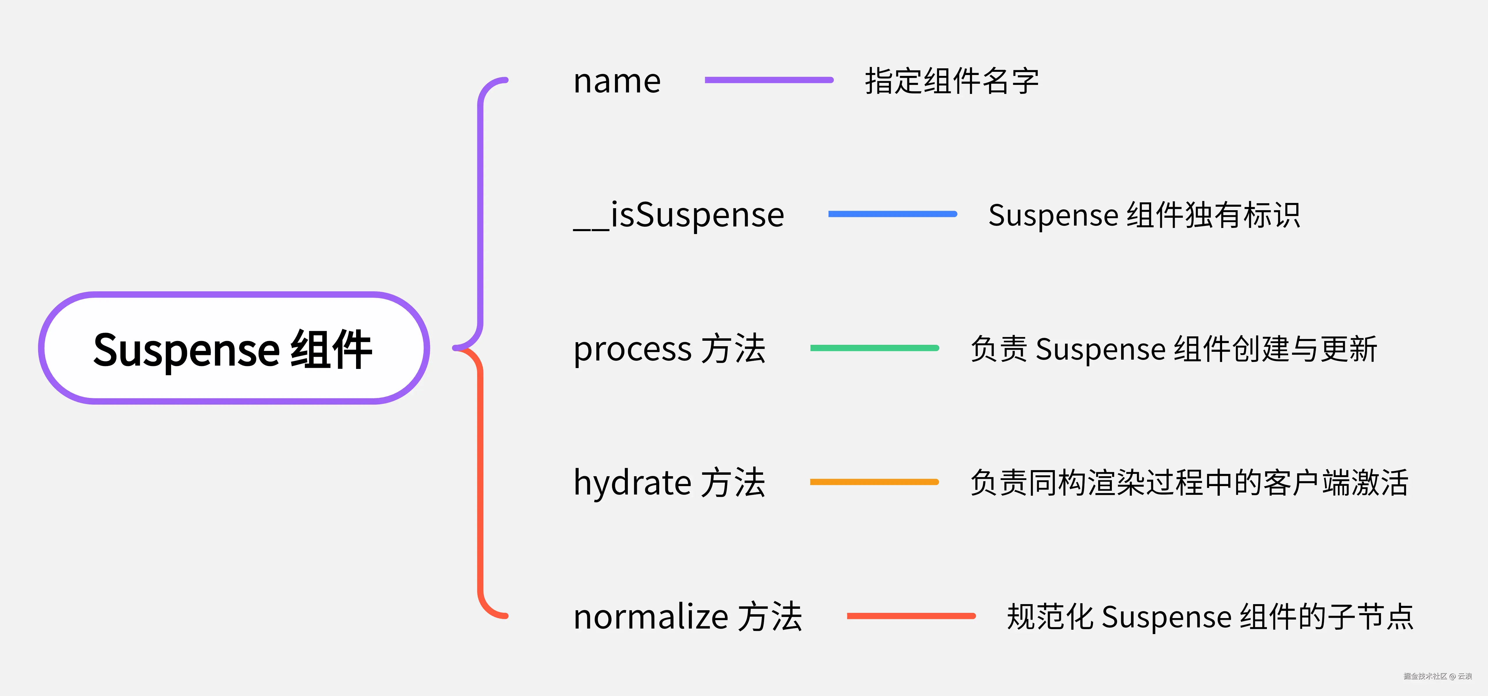 整体的实现流程是,Suspense 发现有异步依赖时,由于异步依赖本质是 Promise