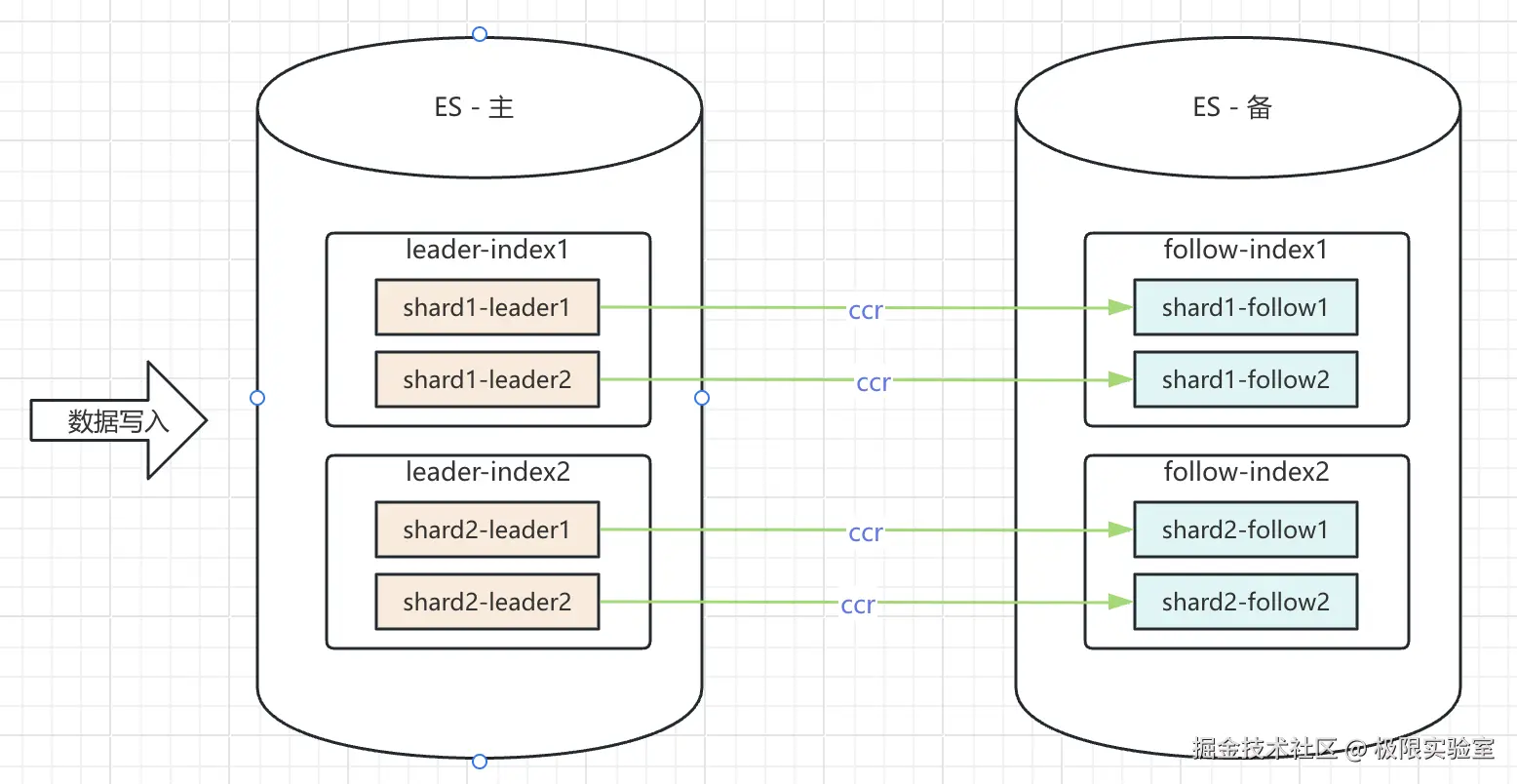 Cross Cluster Replication(CCR)是一种 Elasticsearch 提供的跨集群实时复制方案,可作为数据备份与容灾手段。其原理是将一个集群中的索引设为 leader index ,在远程集群中配置对应的 follower index ,通过内部的 shard-level replication 机制实时拉取并应用写入操作,保证目标索引与源索引保持高度一致。