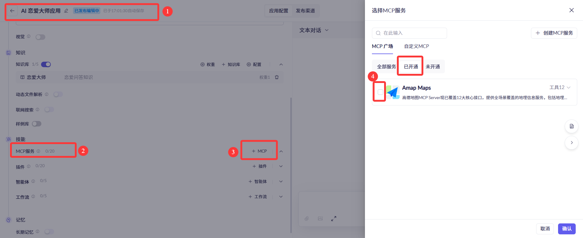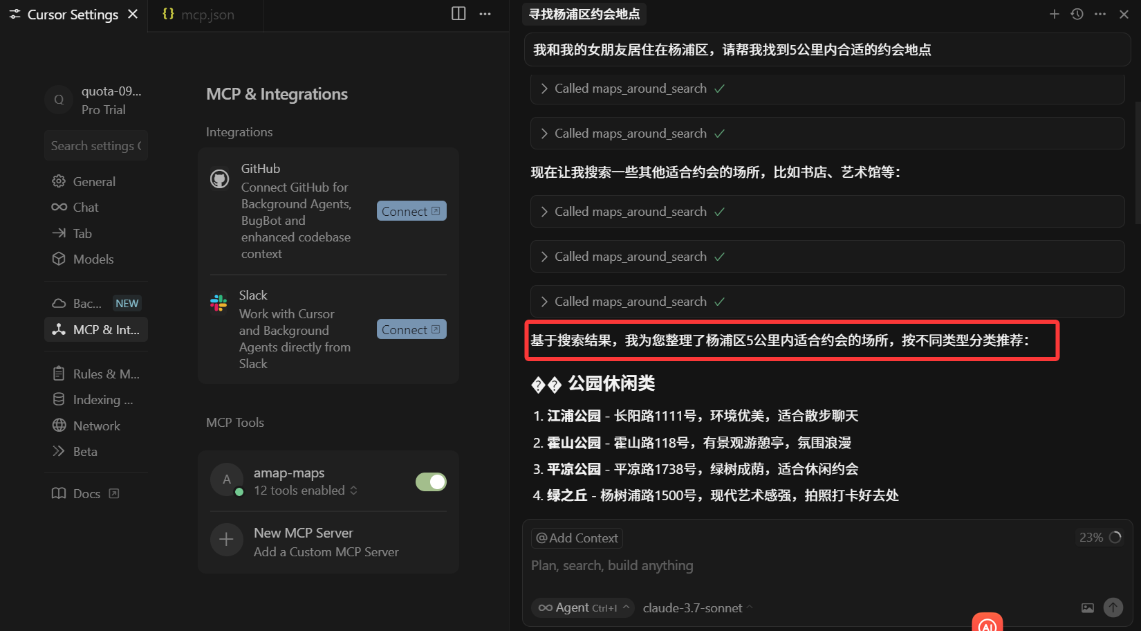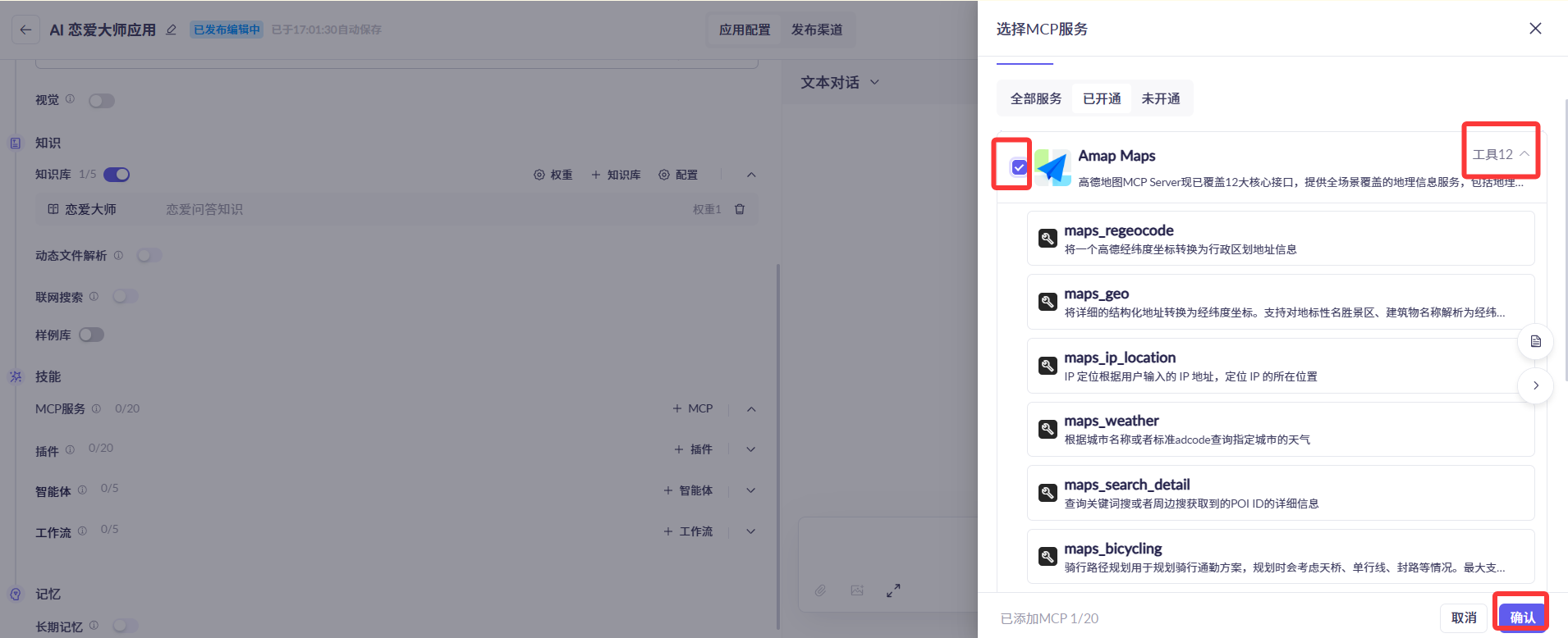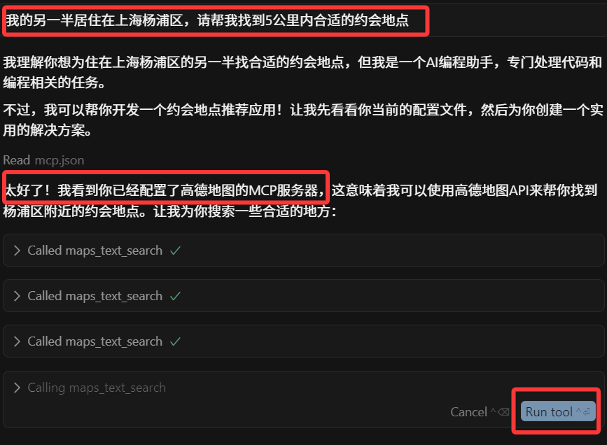 目前我们的 AI 恋爱大师已经具备了恋爱知识问答以及调用工具的能力,现在让我们再加一个实用功能:根据另一半的位置找到合适的约会地点。