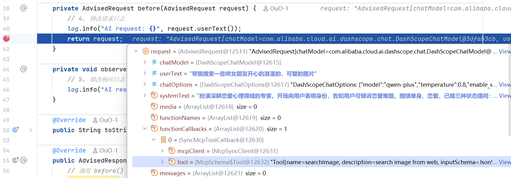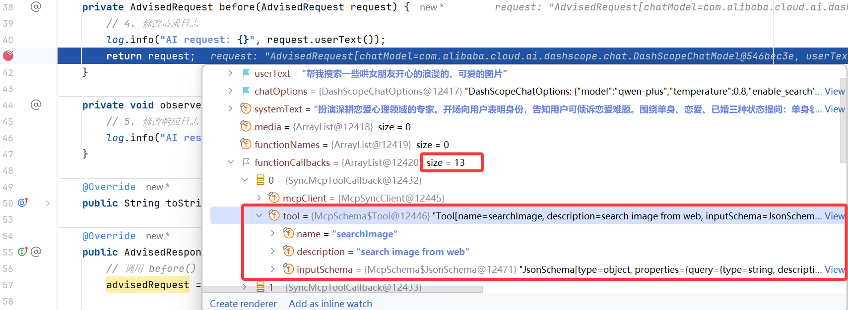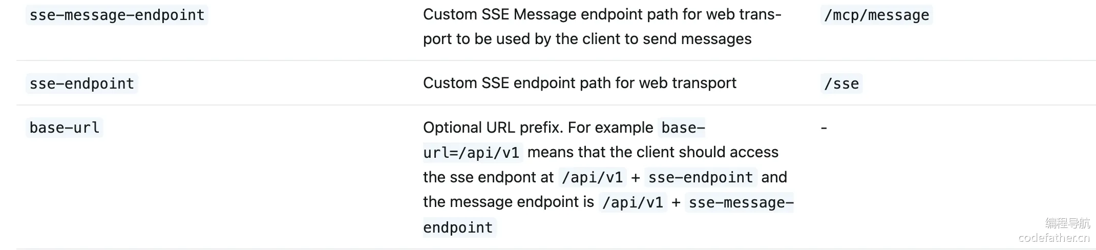 关于这点,网上几乎没有解决方案和实践,但是我们可以思考:SSE 传输模式的实现原理是通过 Spring MVC(或者 WebFlux)在特定地址提供了访问接口,那么如果我们要传输和解析参数,只需通过编写 Controller 来自定义接口,覆盖原有 SSE 地址(sse-endpoint 和 sse-message-endpoint),理论上应该就可以了。但实现起来应该会比较复杂,目前应用场景也不多,可以先直接将参数编码到 MCP 服务端,感兴趣的同学可以自行尝试。