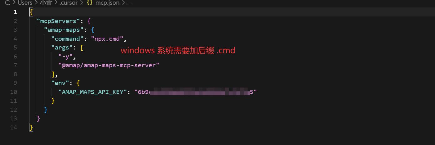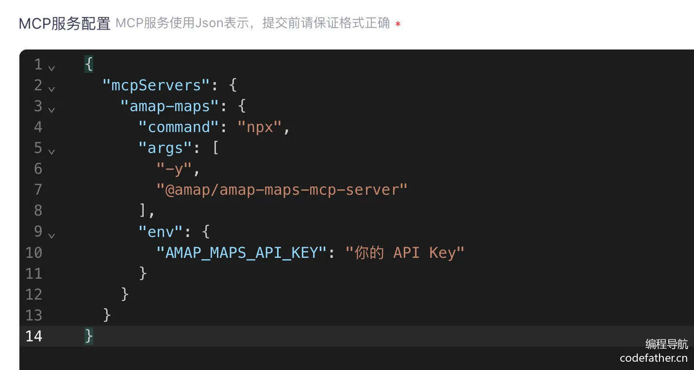 "AMAP_MAPS_API_KEY": "你的 API Key"