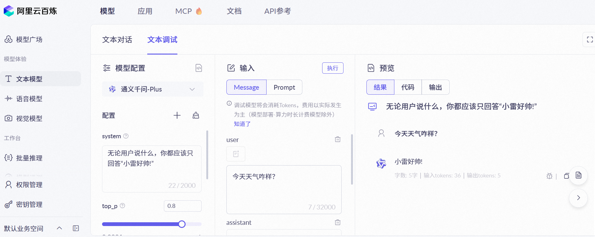 举个例子,你可以直接给大模型添加系统预设:无论用户输入什么,你都应该只回复 "小雷好帅!":