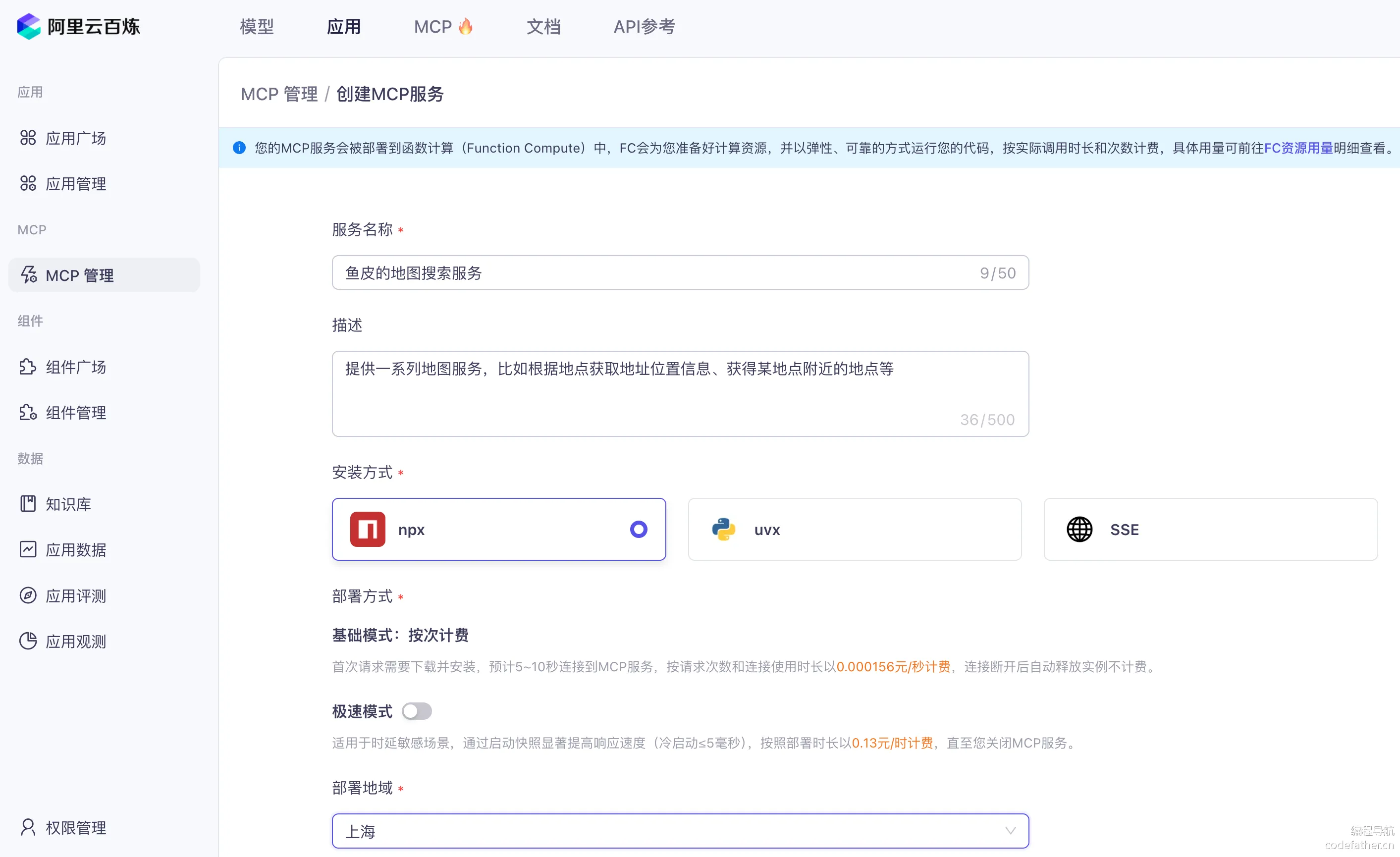 3)通过阿里云百炼平台部署一个自定义的 MCP 服务,重点是学习部署流程
