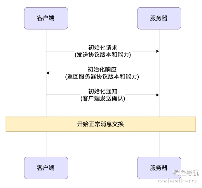 客户端首次向 MCP 服务发起请求时需先完成协议握手与能力协商;