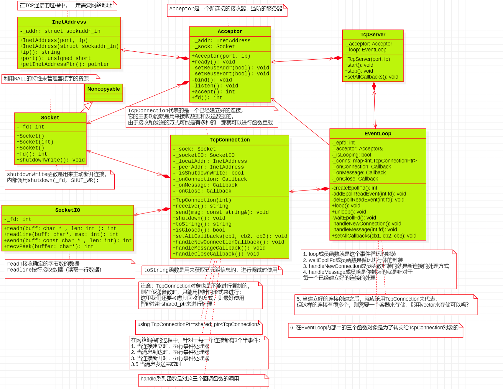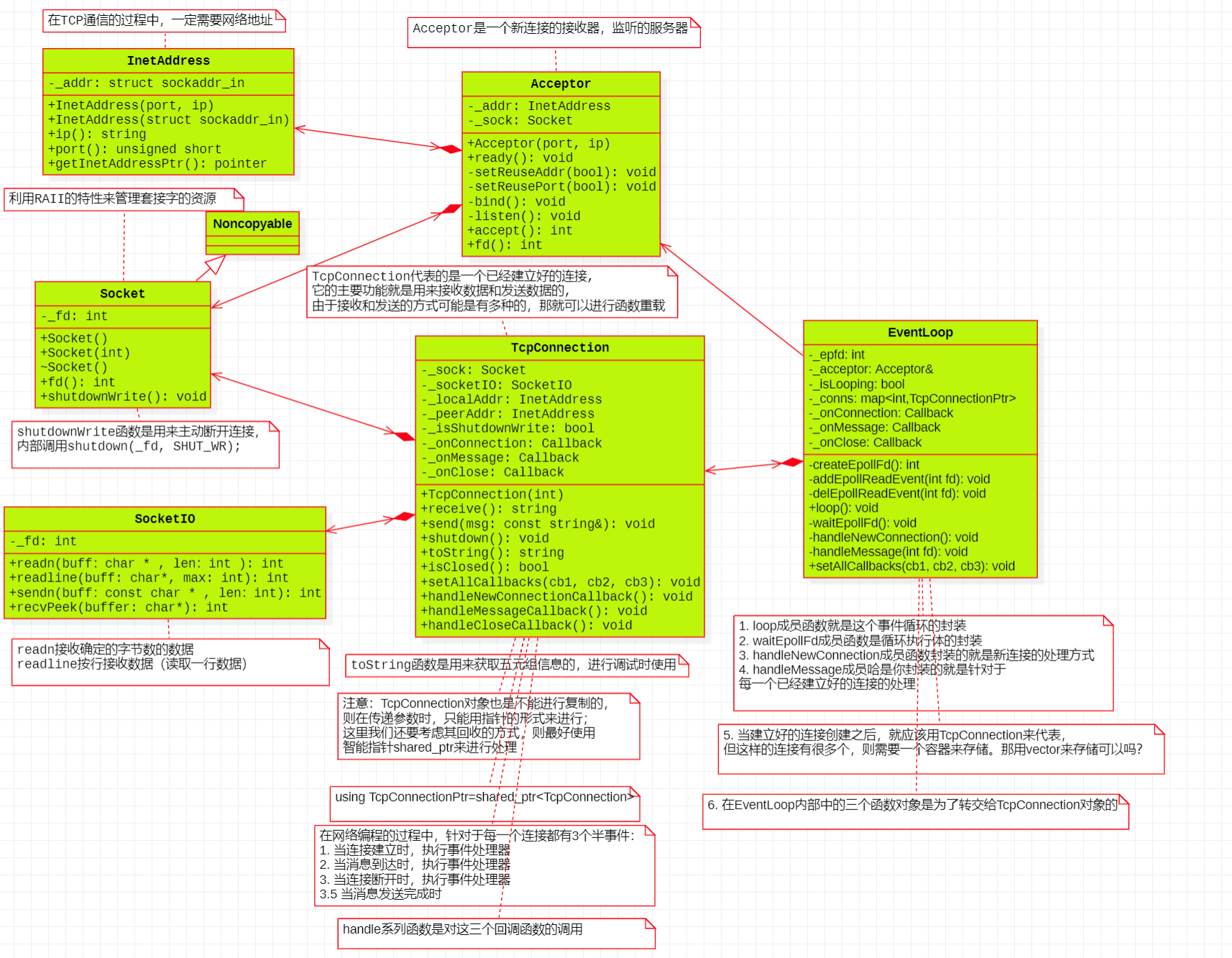 析构关闭 fd,TcpConnection