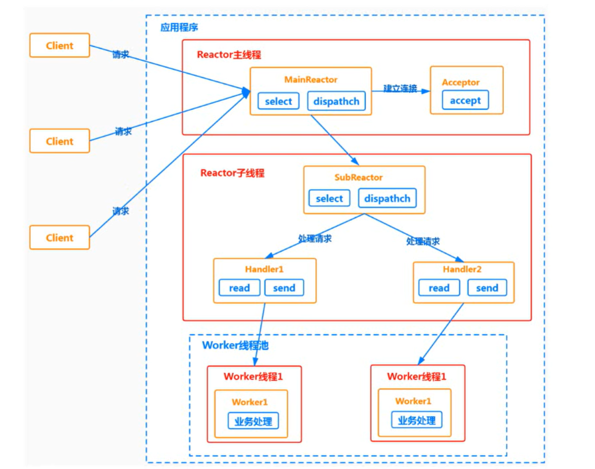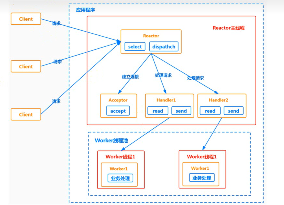 这种模型是 "单线程 Reactor" 的进化版,在高性能网络编程(如 Redis、Netty 早期设计)中被广泛借鉴,平衡了 "事件驱动的高效 IO" 与 "并行业务处理" 的需求。