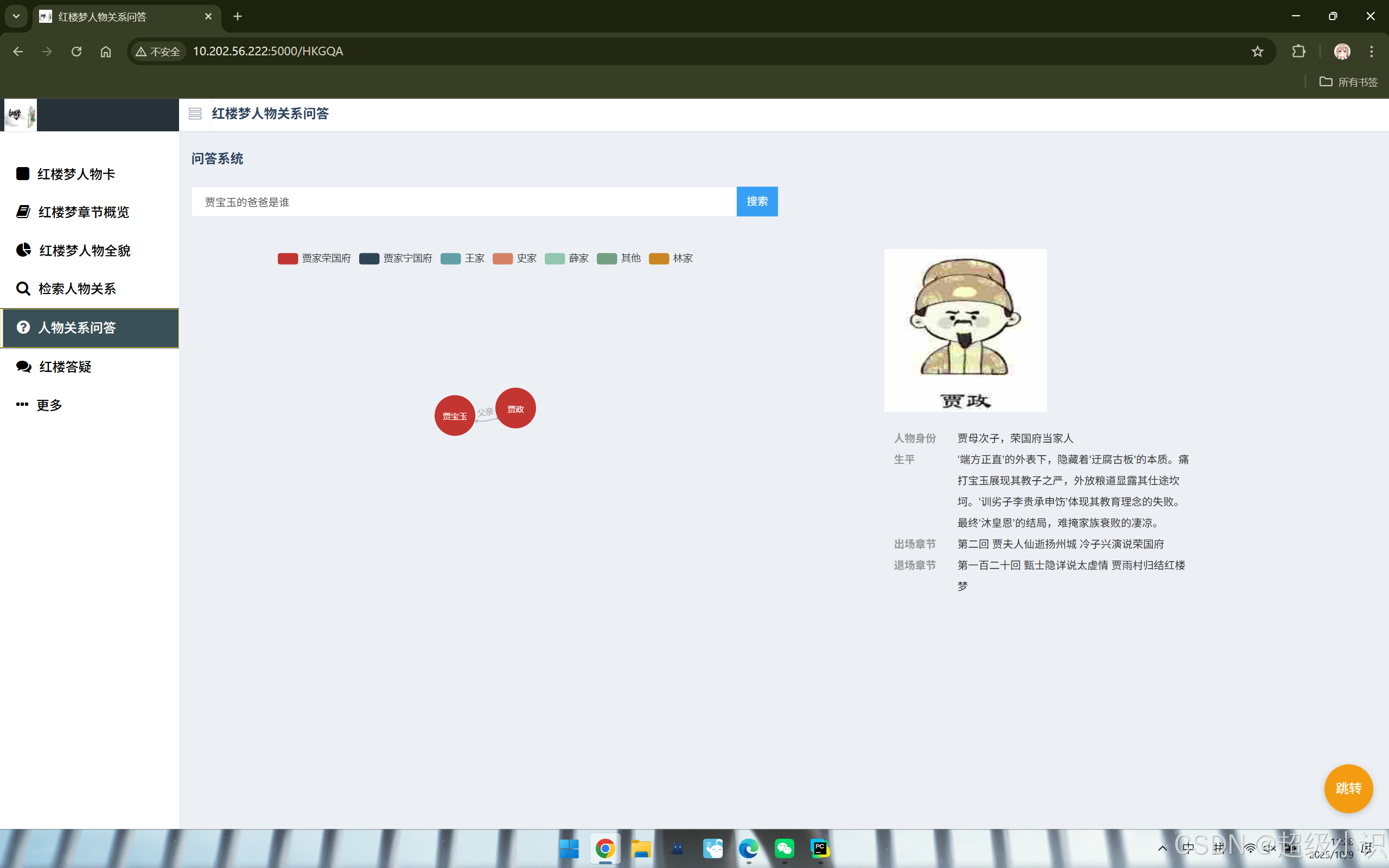 自定义学习模块包含人物全貌,检索人物关系,人物问答板块。