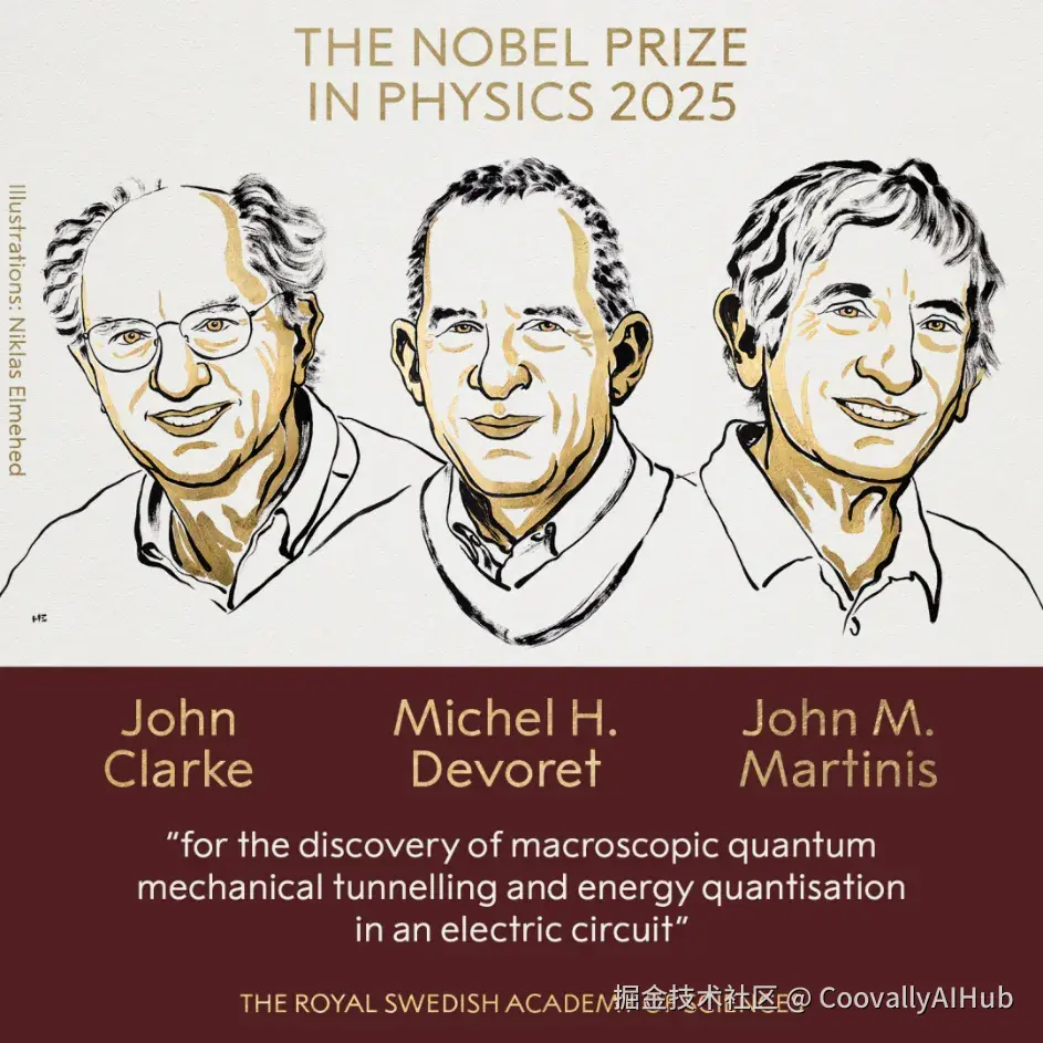 北京时间10月7日下午,瑞典皇家科学院宣布将2025年诺贝尔物理学奖授予美国科学家John Clarke、Michel H. Devoret和John Martinis,以表彰他们:在电路中发现宏观量子力学隧穿效应和能量量子化现象,为下一代数字技术的发展奠定了基础。