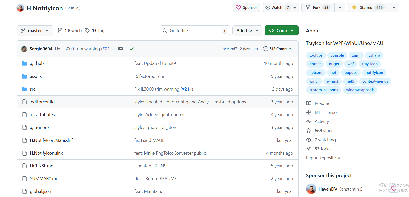 H.NotifyIcon.Wpf项目地址:https://github.com/HavenDV/H.NotifyIcon