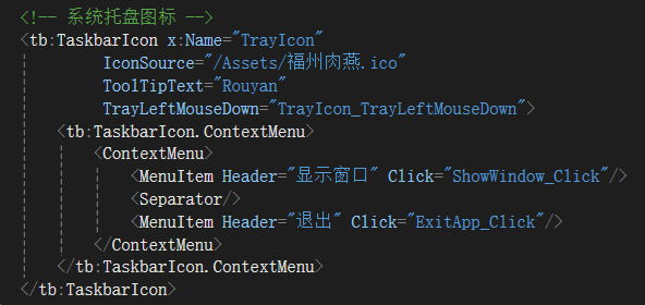 <MenuItem Header="退出" Click="ExitApp_Click"/>