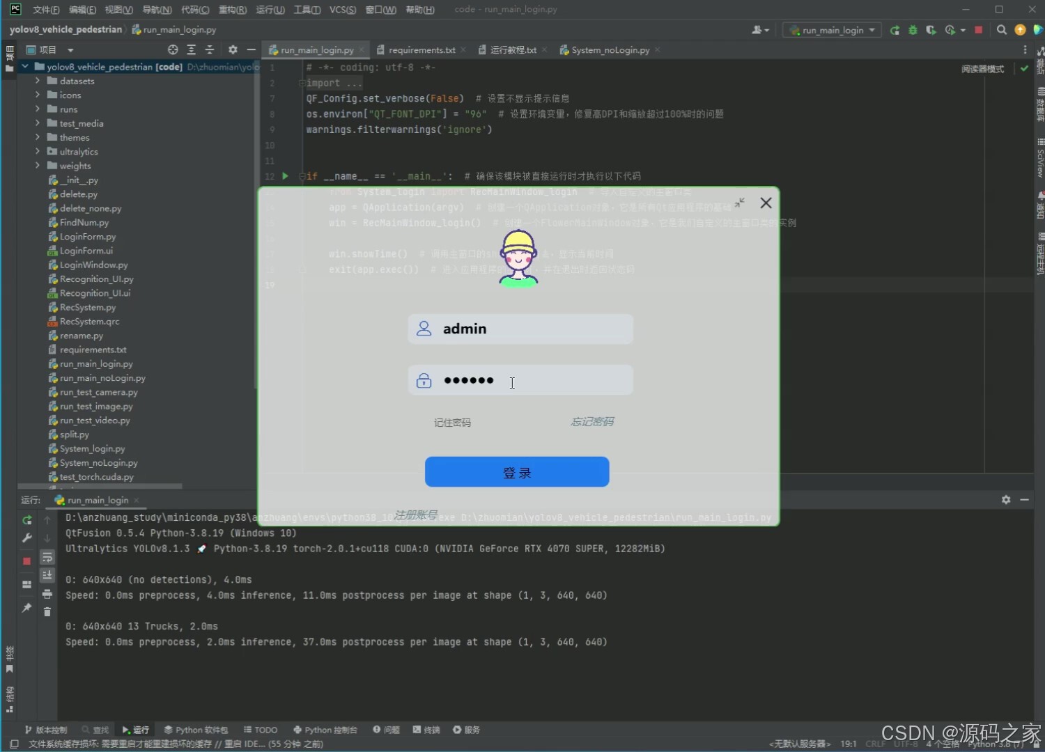 本项目是基于Python语言开发的多目标检测计数与跟踪系统,整合YOLOv8/v5双模型、ByteTrack跟踪算法、PySide6界面框架与SQLite数据库,核心实现行人与车辆(含自行车、小汽车、摩托车等7类目标)的高精度检测、跟踪与计数,适用于人群监控、交通流量分析等场景,旨在解决传统系统检测精度低、功能单一、使用不便的问题。项目前期使用5542张行人车辆图片数据进行模型训练,对比分析YOLOv8与YOLOv5的性能差异,通过mAP、F1 Score等指标评估模型精度,确保检测效果满足实际需求。系统架构围绕"检测-跟踪-交互"构建:检测环节调用YOLOv8/v5模型识别目标,支持用户点击按钮切换模型以适配不同场景;跟踪环节通过ByteTrack算法对检测到的目标分配唯一ID,实现连续轨迹跟踪与计数;数据存储与安全方面,采用SQLite数据库搭建登录注册功能,保障用户身份验证与系统数据安全。在功能设计上,系统支持多源输入处理,可上传图像、视频文件,调用摄像头进行实时检测,还能处理批量文件,满足多样化使用需求;界面基于PySide6设计,简洁直观,降低操作门槛,用户可清晰查看检测结果、跟踪轨迹与计数数据。整体而言,系统通过技术整合实现了"高精度检测+灵活跟踪+便捷交互+安全管理"的一体化功能,既为监控与交通领域提供可靠的数据采集工具,也为多目标检测跟踪技术的实际应用提供了完整方案,具备较强的实用性与可扩展性。