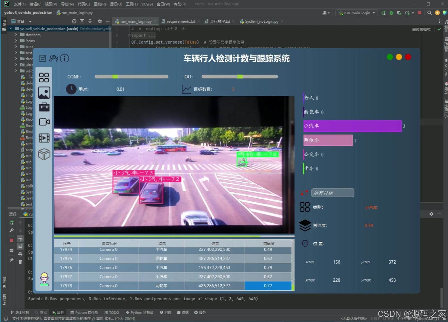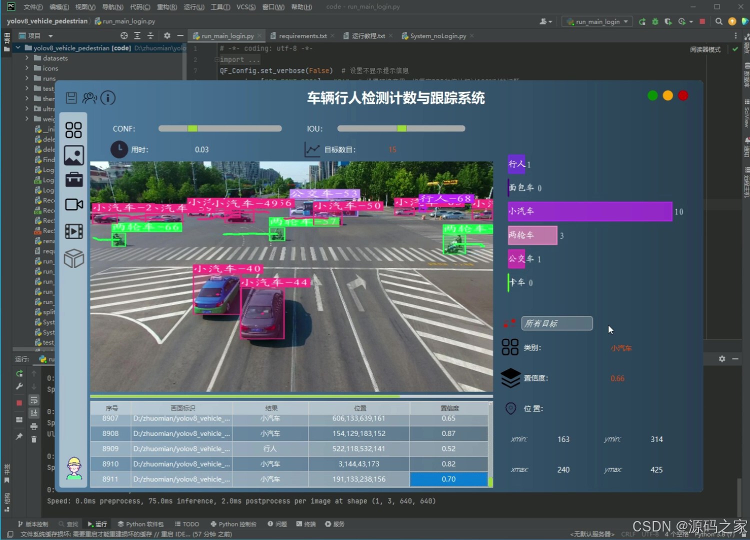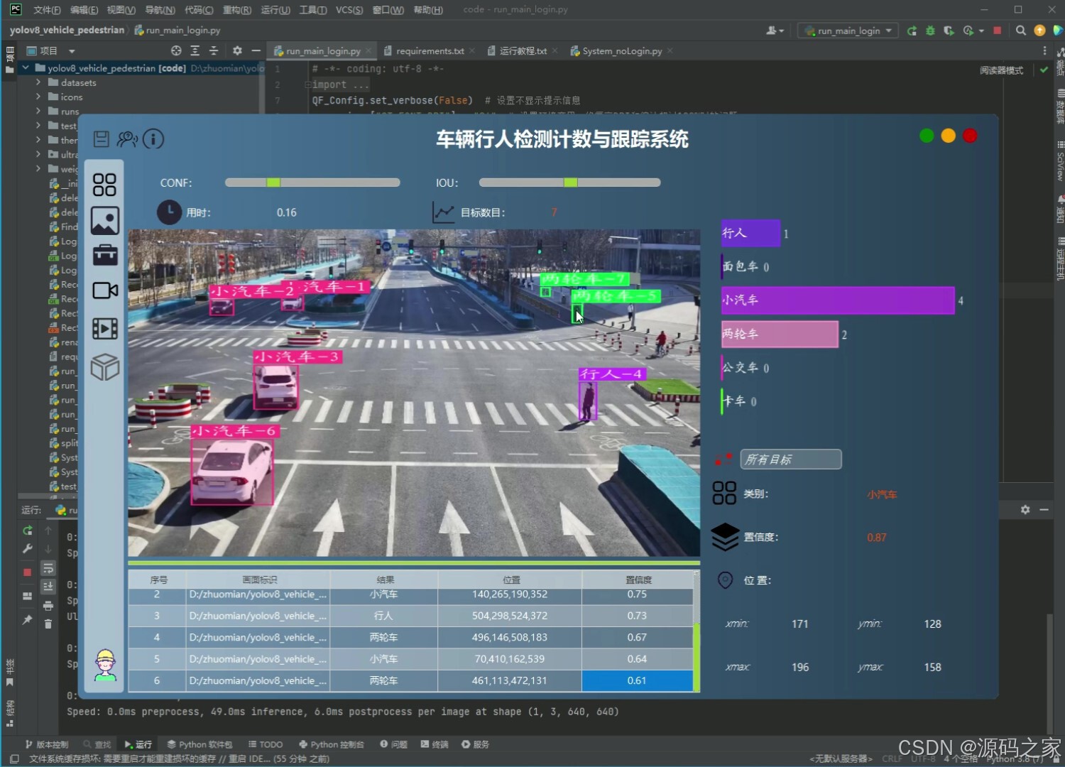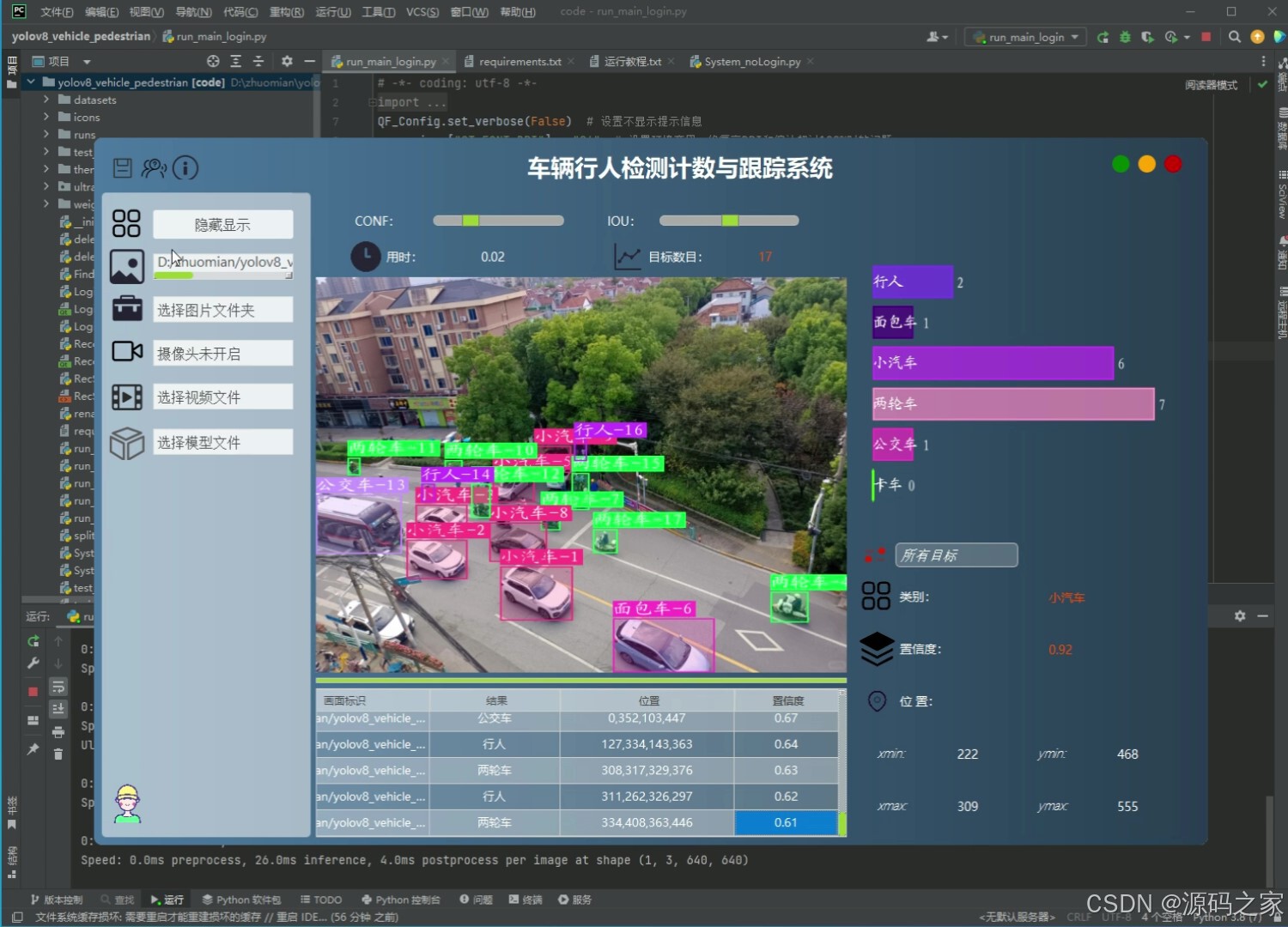 - 技术栈:python语言、YOLOv8模型、ByteTrack算法、深度学习、多目标检测与跟踪、pyqt界面、YOLOv5模型、PySide6、SQLite数据库、5542张行人车辆训练图片