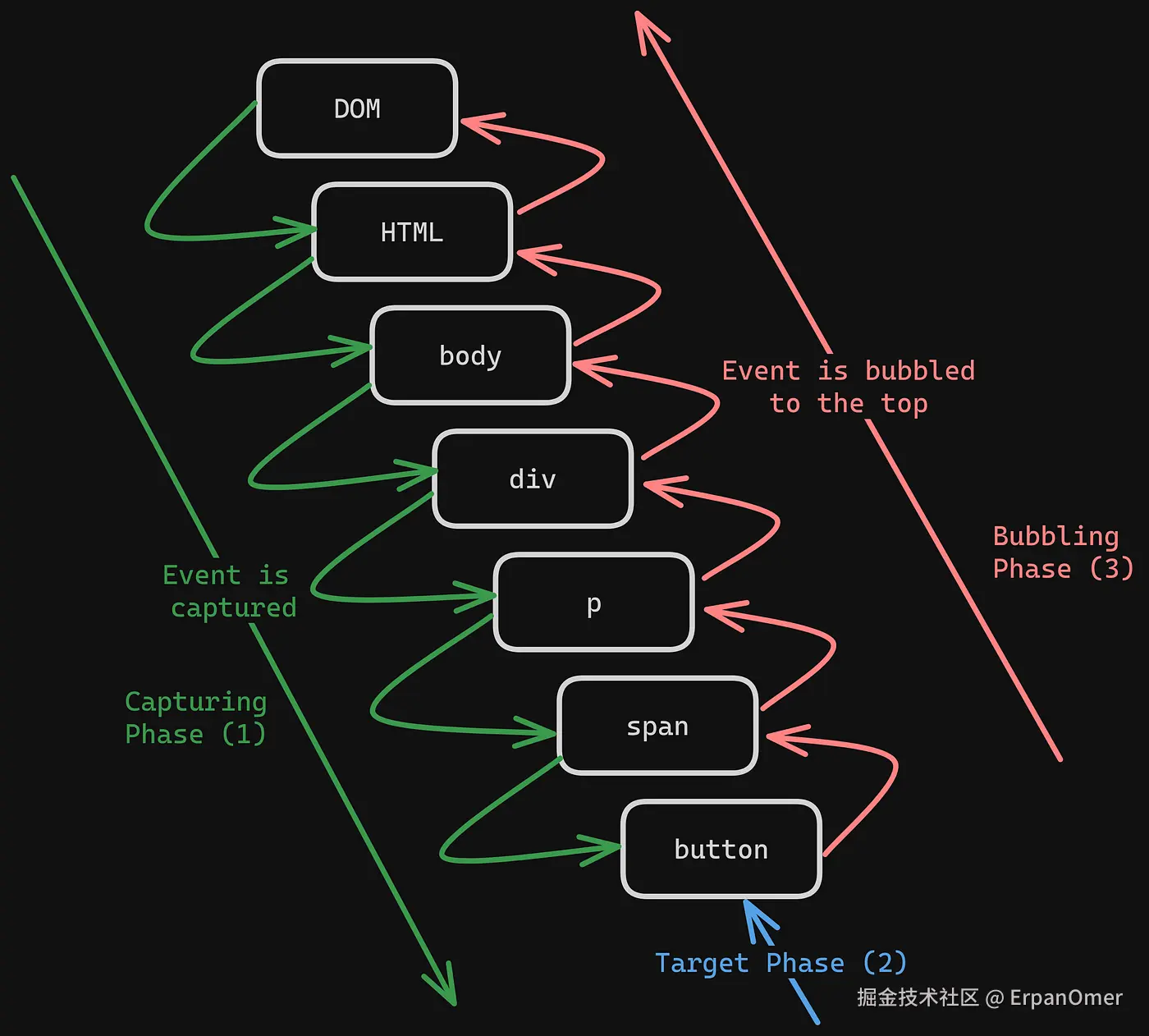 事件委托的核心,是利用了浏览器事件模型的 事件冒泡(Event Bubbling)机制。