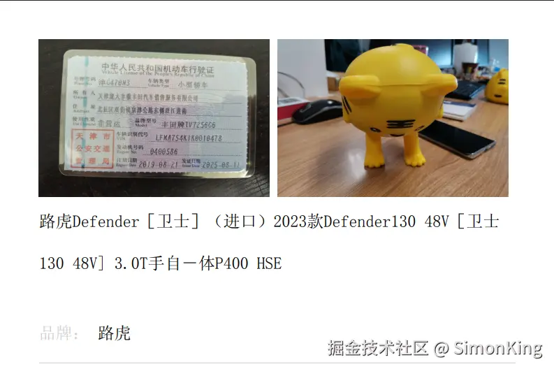 item.put("vehicleName", "路虎Defender[卫士](进口)2023款Defender130 48V[卫士 130 48V] 3.0T手自-体P400 HSE");