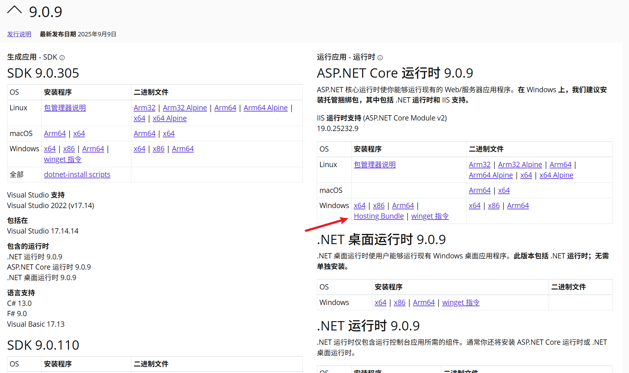 这时候会有非常多的选项,选择 ASP.NET Core 运行时 Hosting Bundle
