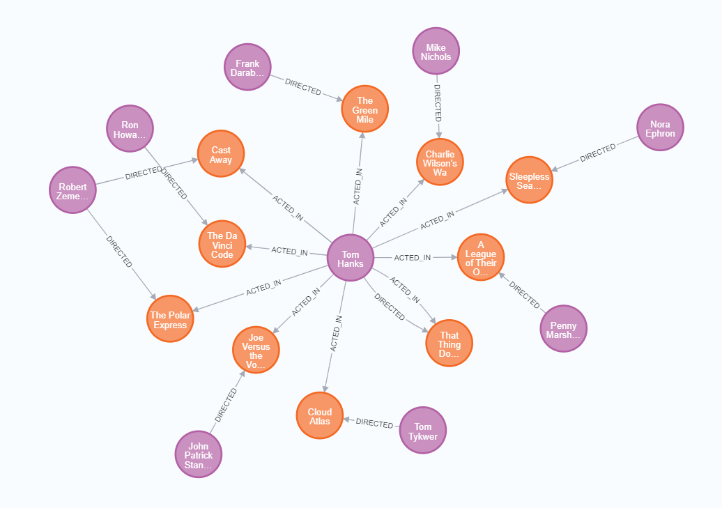在这样一张关系图谱中,假如要查一下Tom Tykwer这个人与 Frank Darab 两者间的关系,使用关系型数据库来做,估计是具有的难度。
