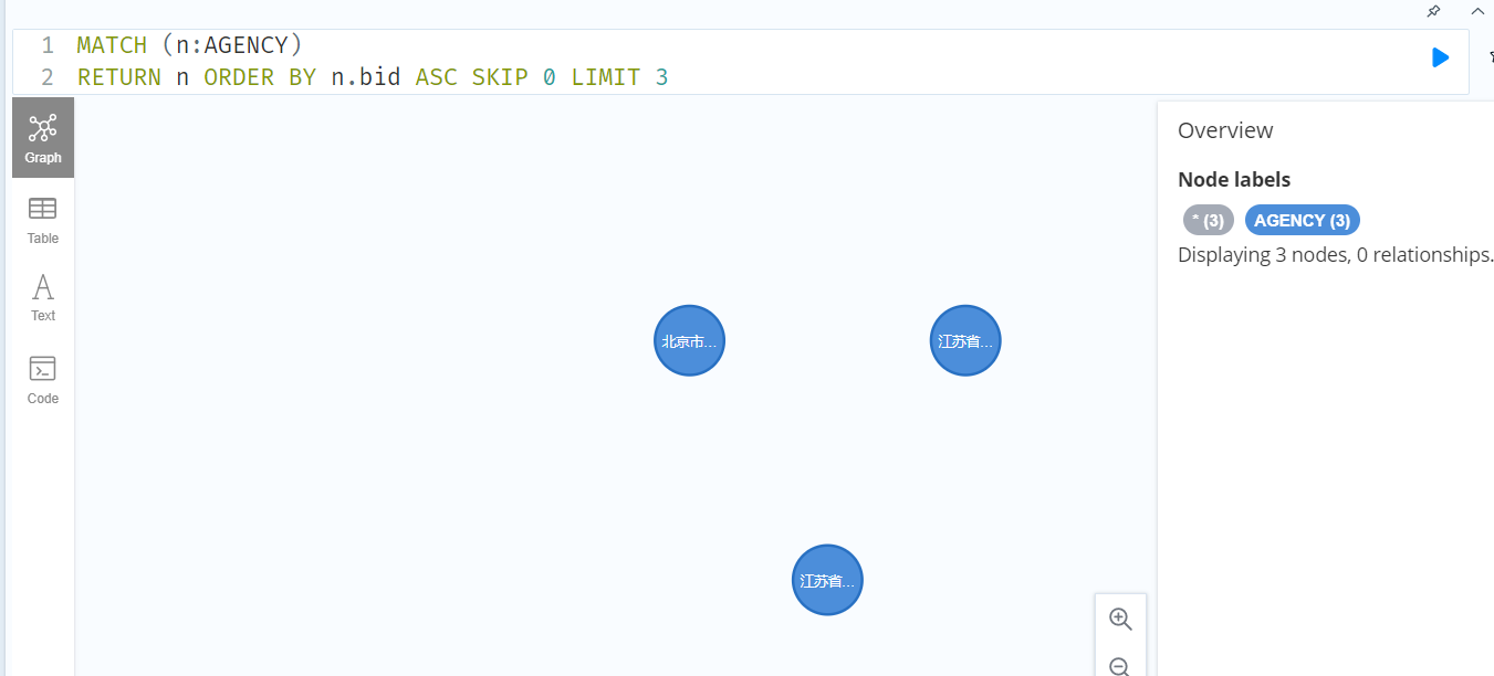 MATCH (n:AGENCY) RETURN n //查询所有网点(AGENCY)