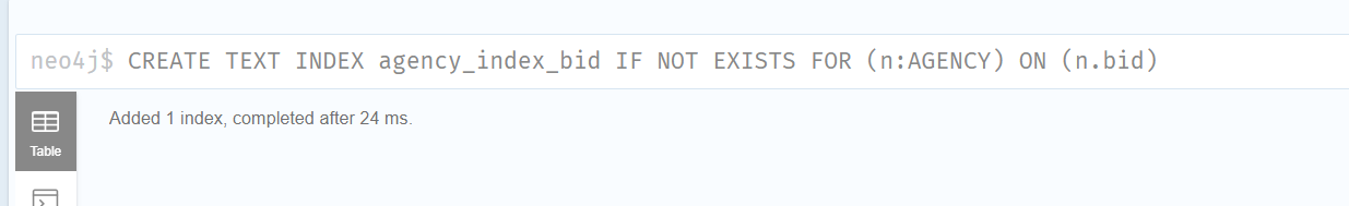 CREATE TEXT INDEX agency_index_bid IF NOT EXISTS FOR (n:AGENCY) ON (n.bid)