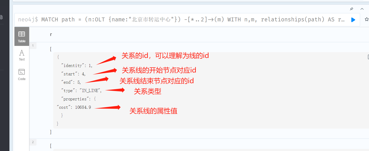 通过 type()函数查询关系类型,通过下面的sql返回两个转运中心的关系