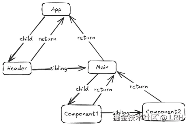 - sibling:指向右侧第一个兄弟 Fiber 节点