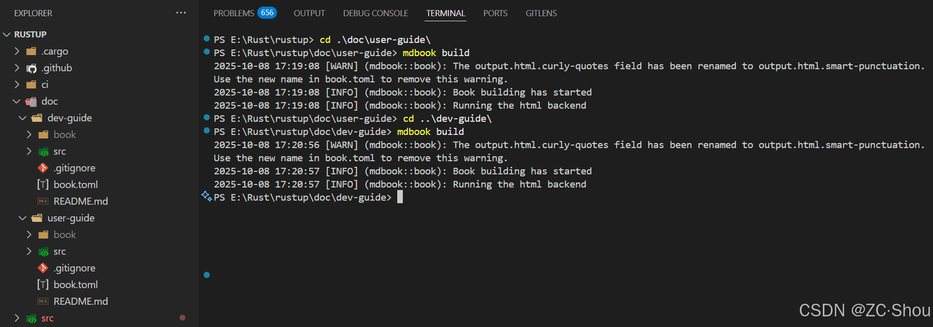 mdBook 的源码仓库为 https://github.com/rust-lang/mdBook,源码本身就是一个 Rust 项目工程,因此,我们可以使用 cargo build