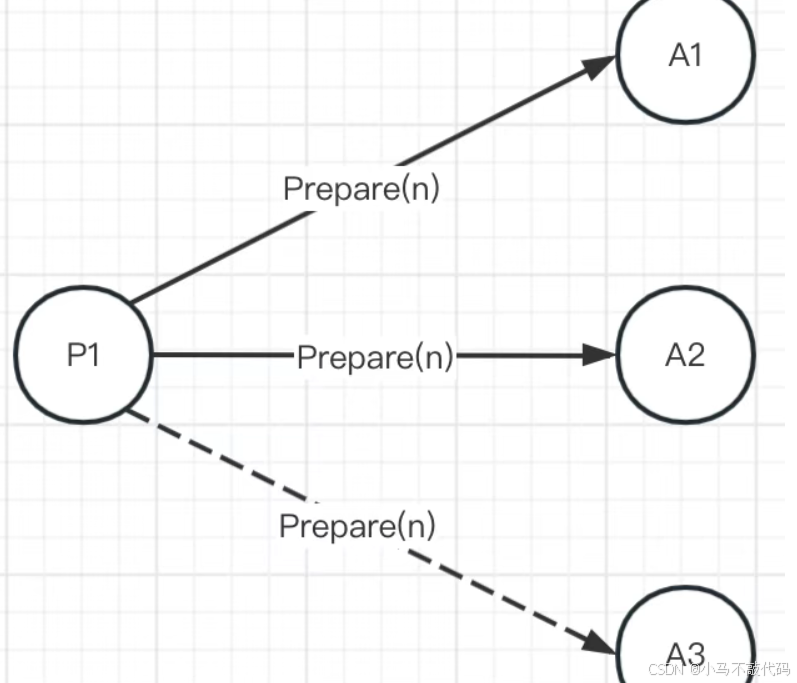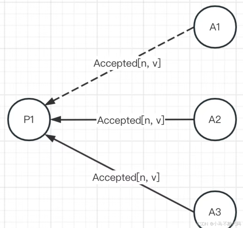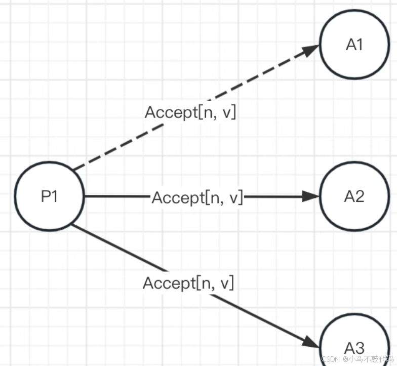 需要注意的是,Proposer发出Prepare(n)请求后,得到多数派的应答。然后可以随便再选择一个多数派广播Accept请求,这时不一定要将Accept请求发给有应答的Acceptor。