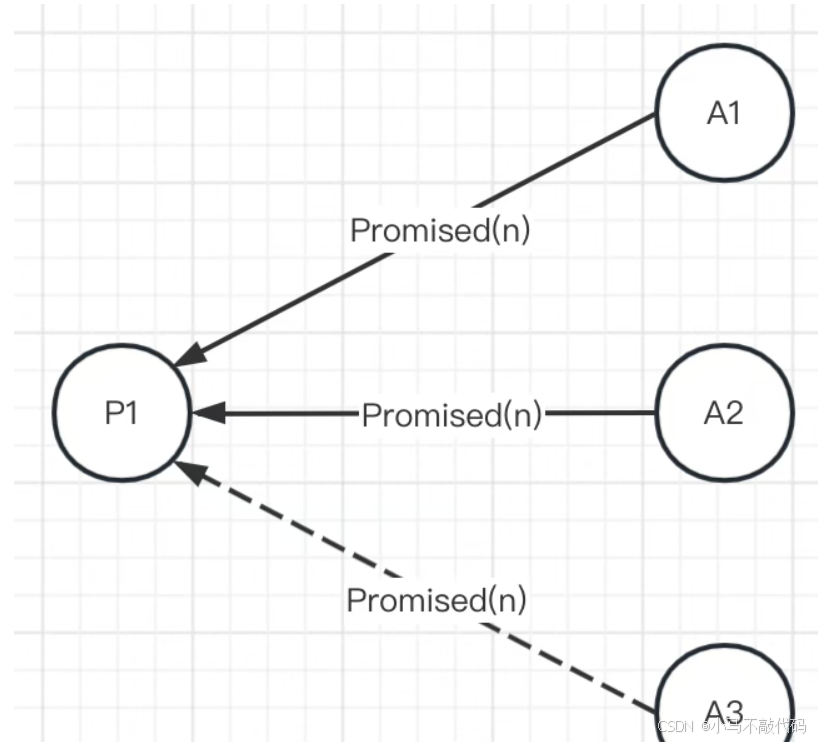 Acceptor接收到Prepare(n)请求,若提议编号n比之前接收的Prepare请求都要大,则返回承诺将不会接收提议编号比n小的提议,并且带上之前Accept的提议中编号小于n的最大的提议,否则不予理会。