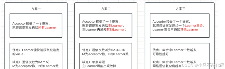说明三:最后Learner可以根据Acceptor的状态,学习最终被确定的值。